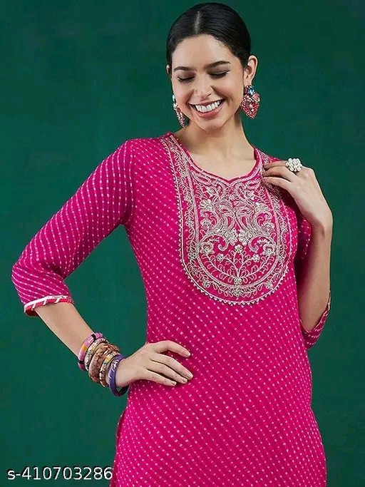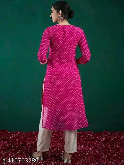 This Envi Georgette pink lehriya kurta is a stylish and elegant addition to your wardrobe. Made from high-quality Georgette fabric, this kurta features a beautiful lehriya design that will make you stand out at any event. The soft and lightweight material ensures comfort all day long, while the vibrant pink color adds a pop of color to your look. Pair it with matching leggings or pants for a complete ethnic ensemble. Perfect for parties, weddings, or casual outings, this kurta is a must-have for all fashion-conscious women.