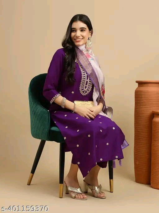 Elevate your ethnic wardrobe with our stunning Women's Chinon Embroidered round neck 3/4 sleeve Kurta Pant with Dupatta Set. Colors Available Rani , Teal Blue , Neon , Maroon , Violet. Size S to XXL. Crafted with meticulous attention to detail, this ensemble seamlessly blends traditional elegance with contemporary flair. The kurta features intricate embroidery adorning the round neckline and exquisitely designed 3/4 sleeves, adding a touch of sophistication to the ensemble. Paired with complementing pants, this set offers both comfort and style, perfect for any occasion. Complete the look with a beautifully coordinated dupatta, enhancing the overall charm of the outfit. Whether it's a festive celebration or a formal gathering, this kurta pant set is sure to make you stand out with its timeless allure and graceful silhouette.