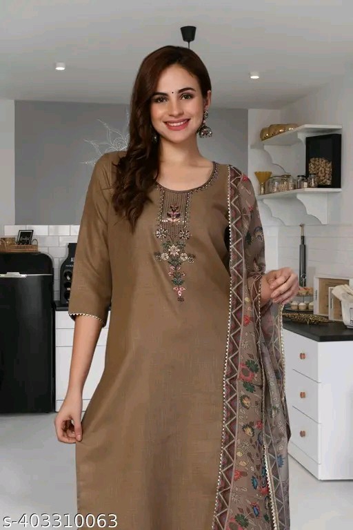 Elevate your ethnic wear collection with this elegant Poly Cotton Solid Beige Kurta from PALLU INDIA. The set comes with matching Pant and Dupatta, perfect for any special occasion or everyday wear. The comfortable fabric and stylish design make it a must-have for any fashion-forward woman's wardrobe.
