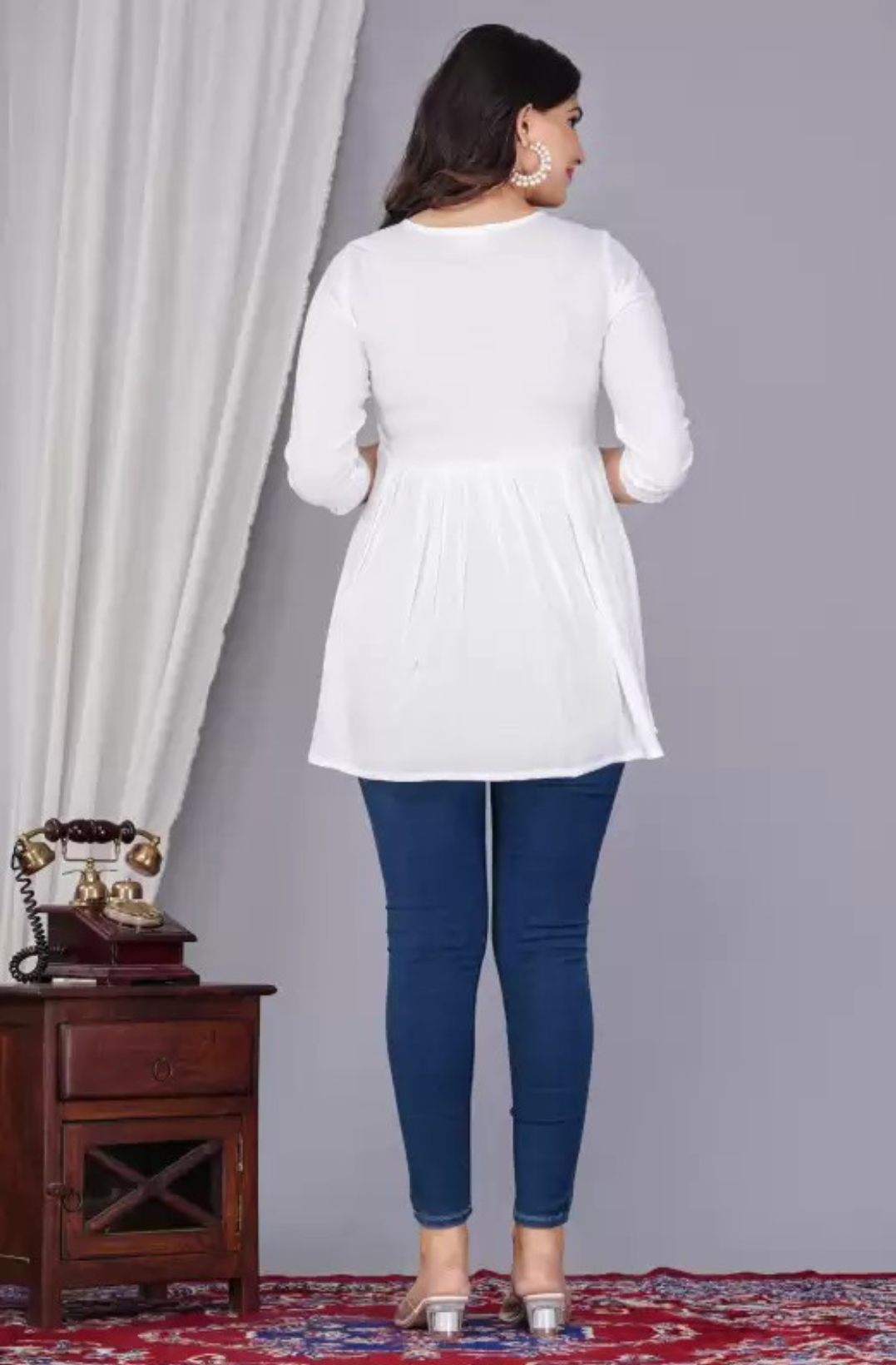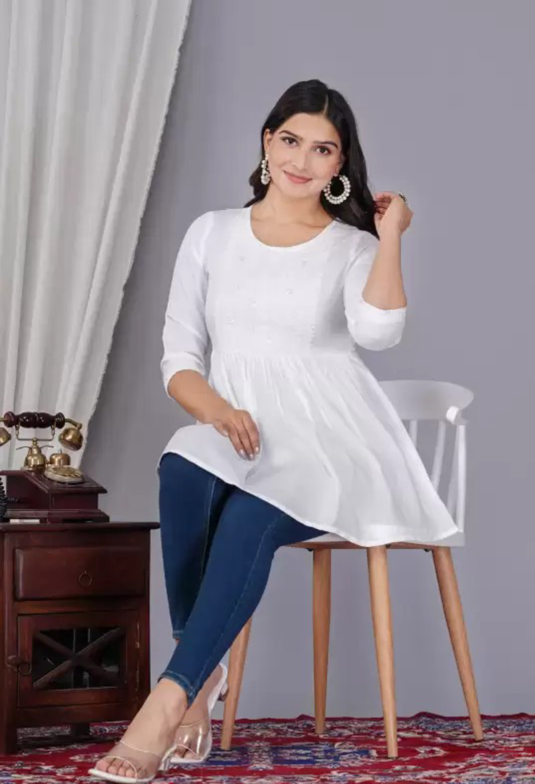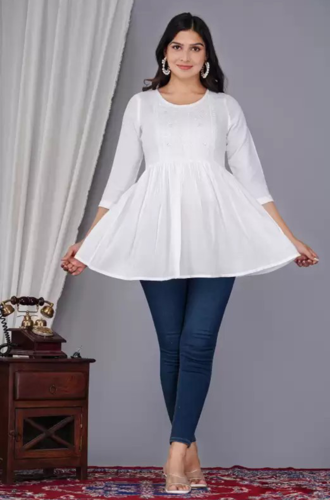 Get ready to turn heads at the next party with this stunning embroidered women's top. The regular sleeves and flattering fit make it a versatile piece that can be dressed up or down. Perfect for adding a touch of glamour to any outfit, this top is a must-have for your wardrobe. Shop now and elevate your style game!