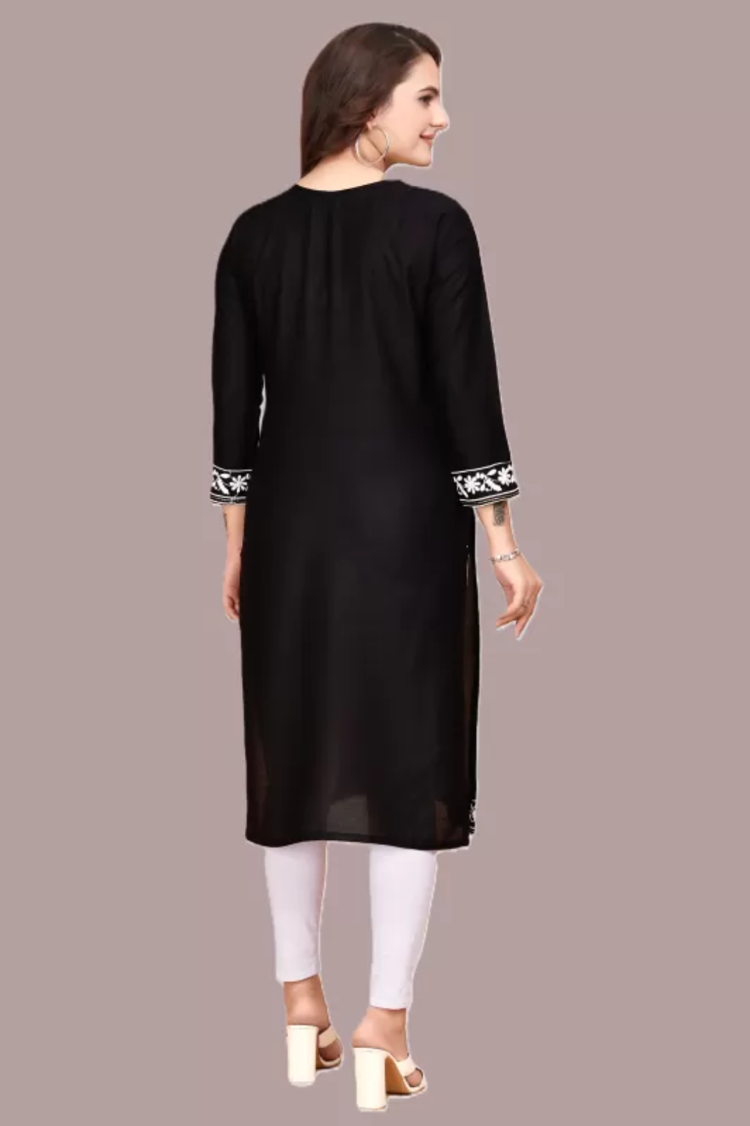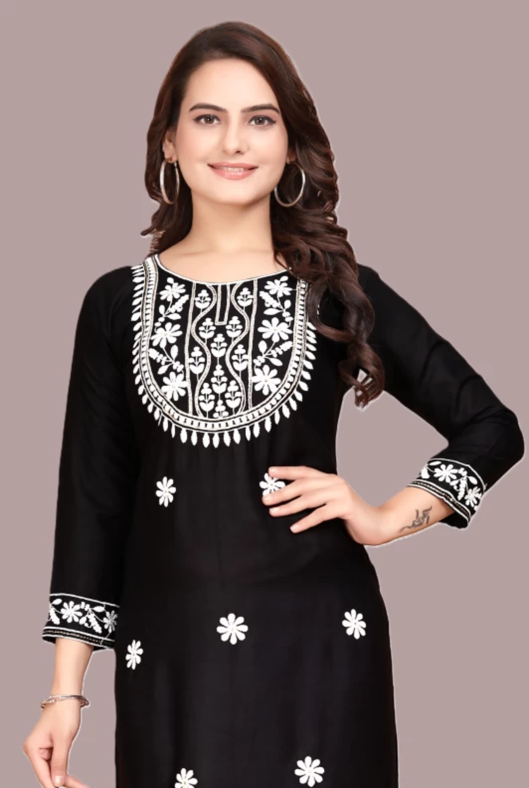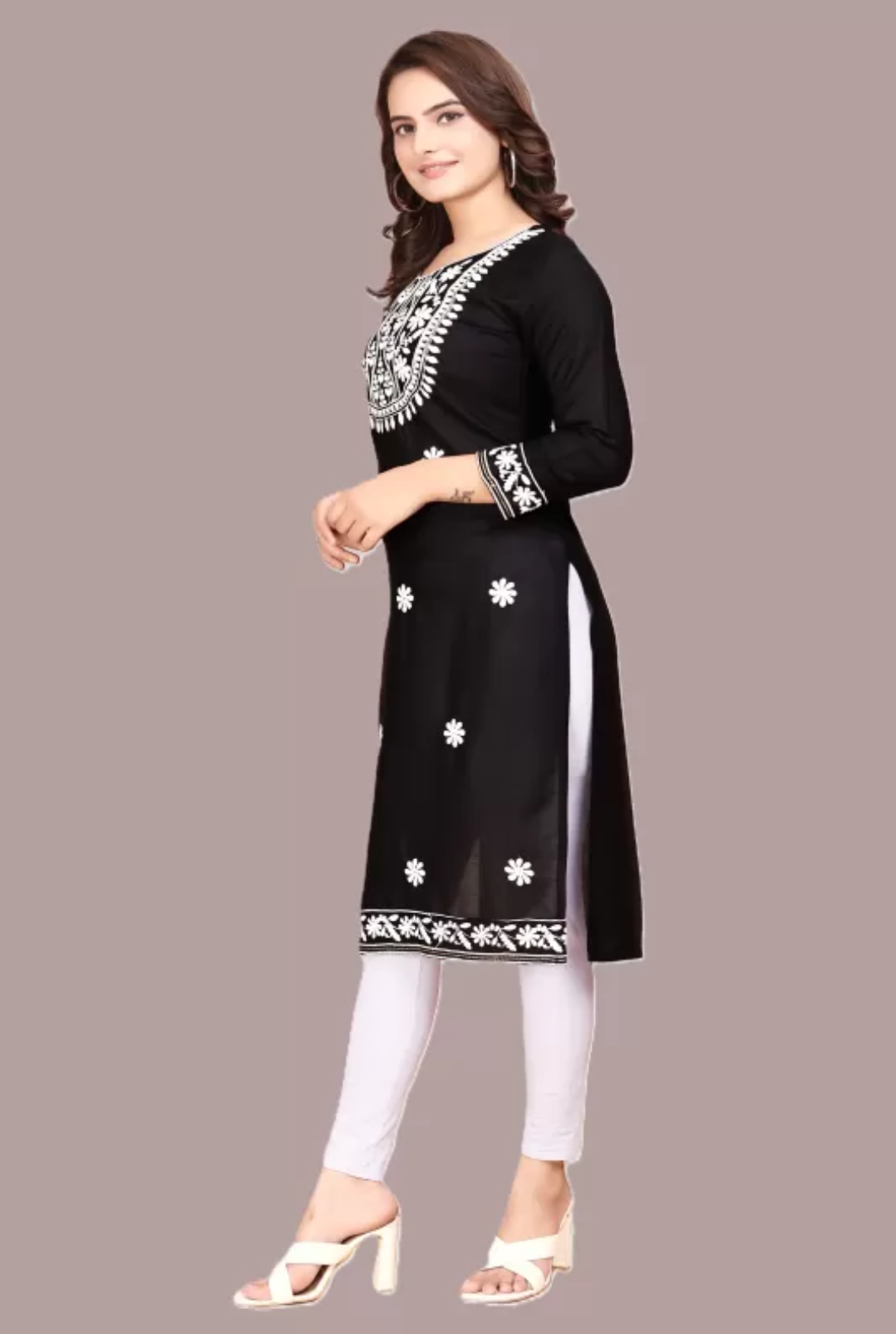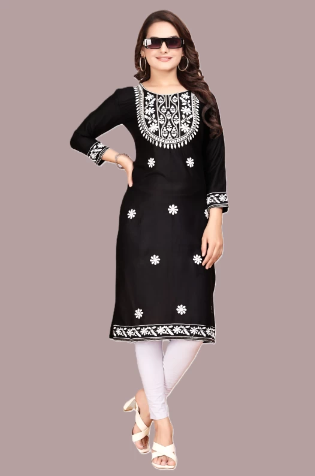Elevate your daily look with this stunning Women's Lakhanavi Daily Wear Rayon Kurti in Black Colour. Made from high-quality rayon fabric, this kurti is not only comfortable to wear but also stylish and chic. The classic black color makes it versatile and easy to mix and match with any bottom of your choice. Whether you're heading to work or meeting friends for a casual outing, this kurti is the perfect choice for a trendy and effortless outfit.